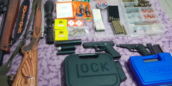 Pareja discutió por dinero y descubrieron que el hombre tenía un arsenal de armas en su casa