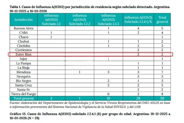 El Boletín Epidemiológico Nacional confirmó un segundo caso del subclado K de la gripe H3N2 en Entre Ríos. A nivel país, los contagios se duplicaron en una semana y casi la mitad de los pacientes diagnosticados con esta variante requirió internación.